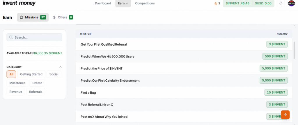 One of the key earning methods on Invent Money is through token rewards. These tokens are expected to gain value when the project reaches major milestones such as token generation events or exchange listings. At that point, users may be able to convert their tokens into real money. However, patience is essential, this is not a get-rich-quick system. You may need to work consistently for one to three months to see meaningful results.